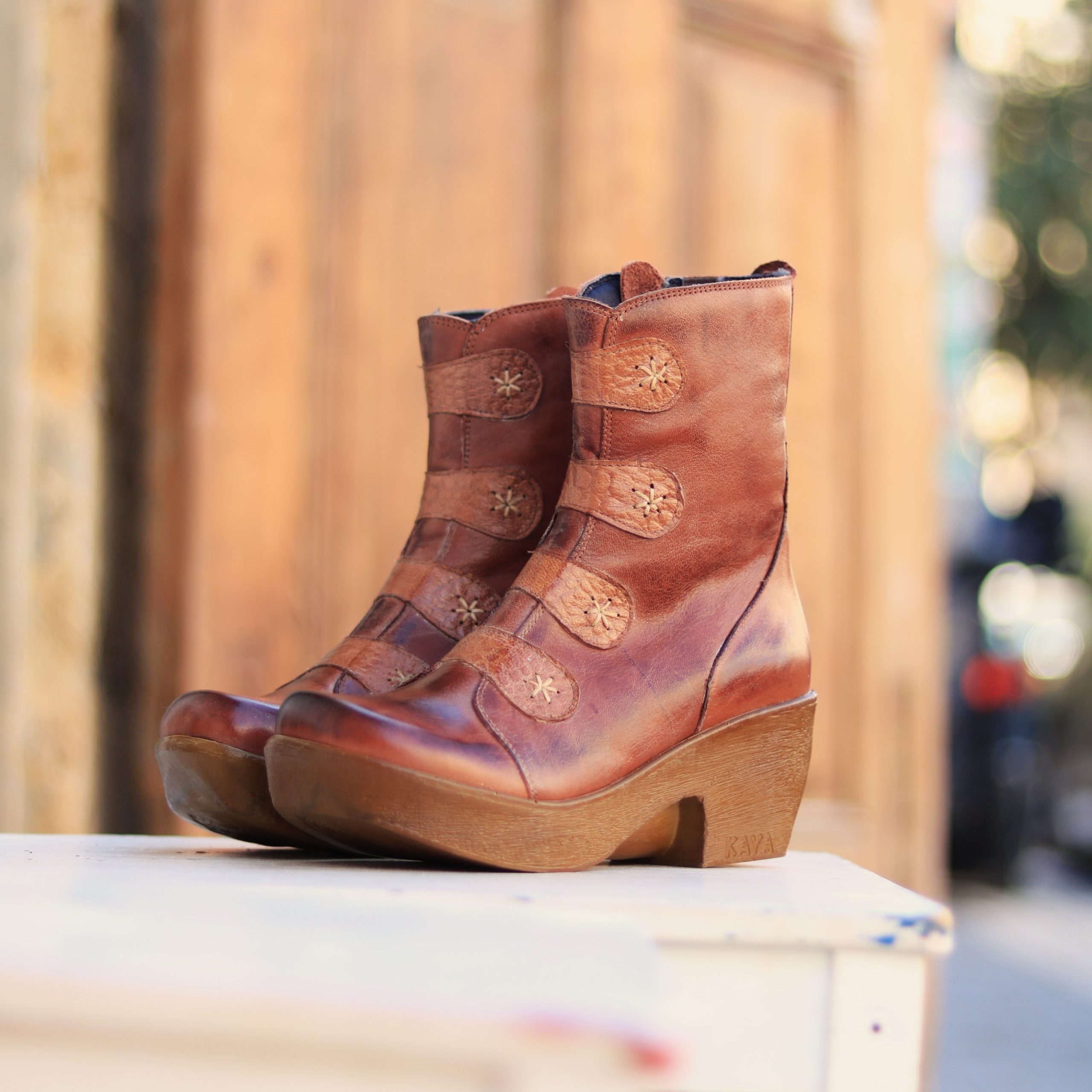 מגף פלטפורמה מחוספס בגובה 3/4 עם סוליה ייחודית - קלת משקל ונוחה במיוחד.