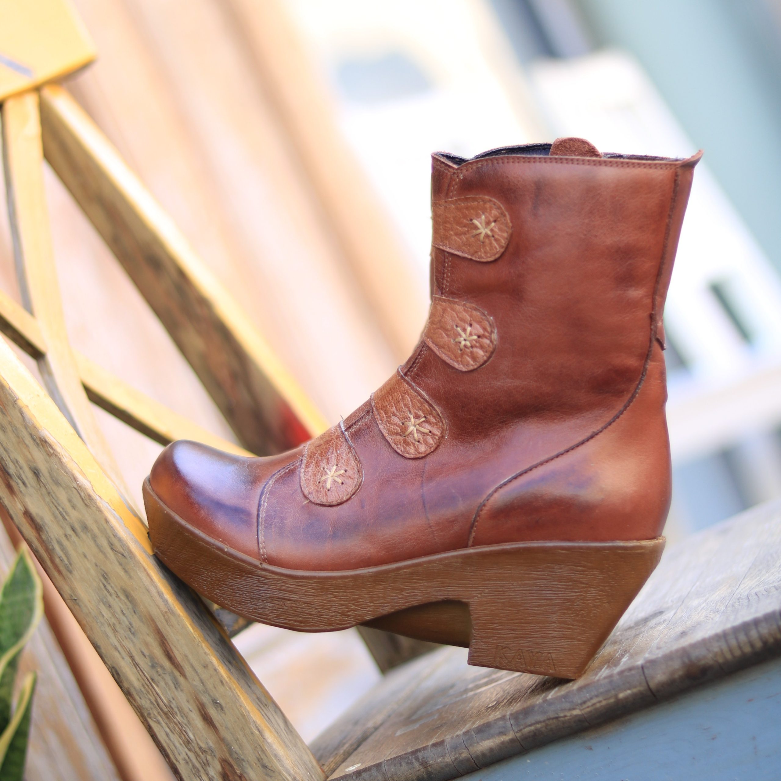 מגפון עור, עשוי עור איכותי, עם סולית פלפורמה ייחודית - קלת משקל ונוחה במיוחד.